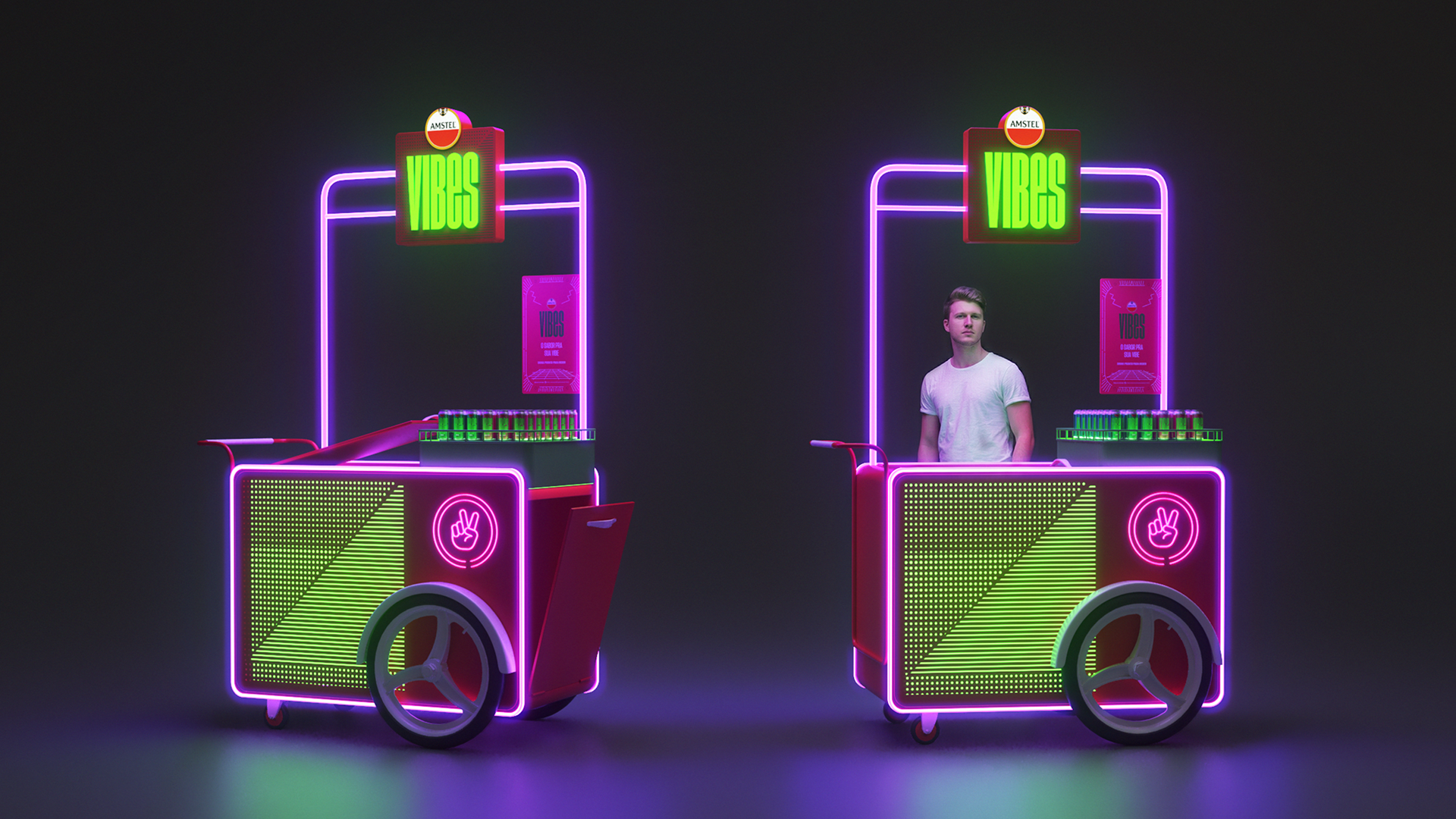 Carrinhos promocionais desenvolvidos para a Agência Onzex, ativações de marca em ambientes urbanos, com foco em visibilidade, mobilidade e engajamento. O projeto combina design de produto e identidade visual para criar experiências de marca dinâmicas e atrativas, adaptadas para diferentes campanhas. Aplicado em projetos para Lagunitas, Amstel, Castas e FYS.