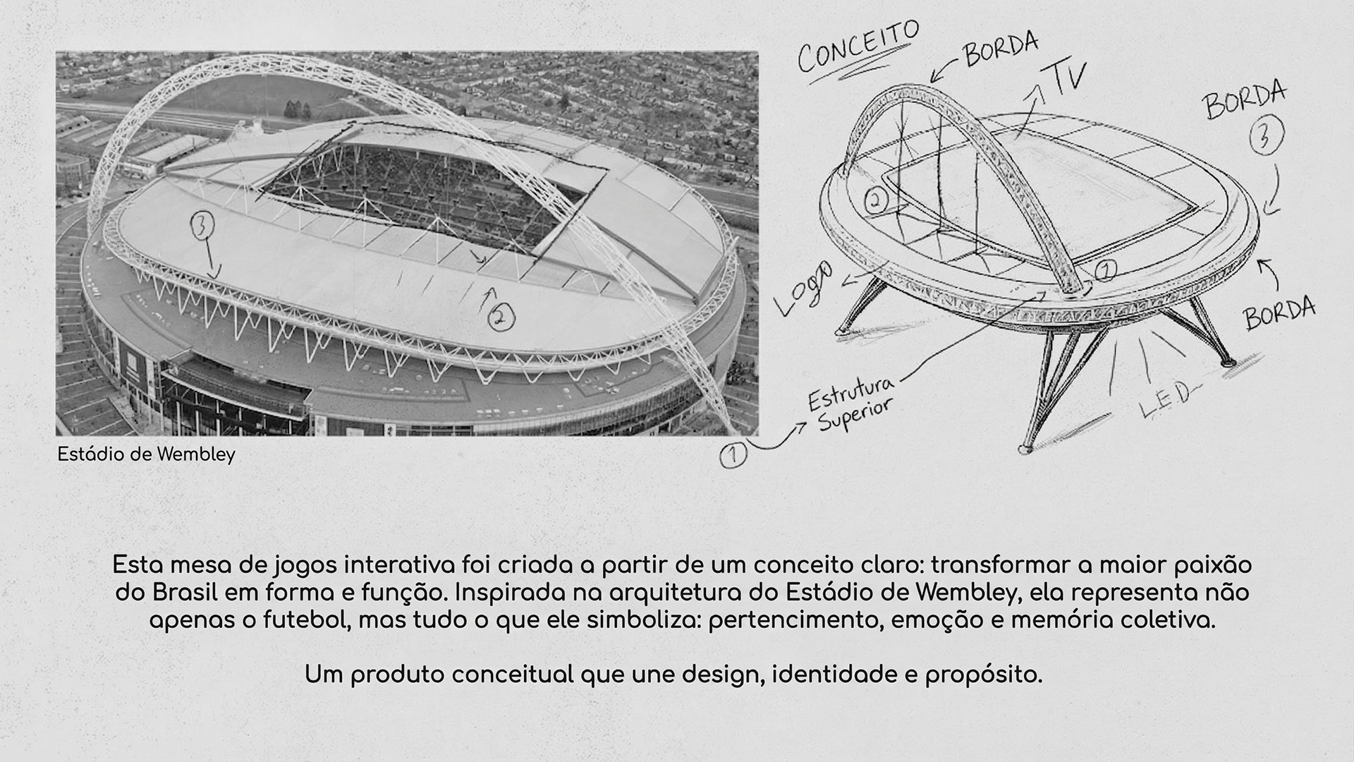 Projeto desenvolvido para Agência Onzex, com foco na criação de uma mesa interativa inspirada no Wembley Stadium. Fui responsável pelo look development, lighting e modelagem 3D das cenas, garantindo consistência visual e alto nível de realismo ao longo de todo o projeto. Atuei em colaboração com o time criativo no desenvolvimento do conceito e design da peça, buscando traduzir elementos arquitetônicos e a atmosfera do estádio em uma experiência visual envolvente e contemporânea.